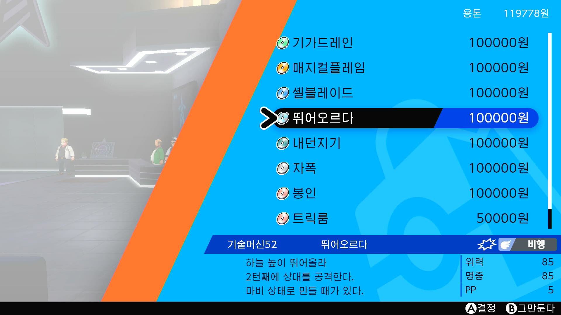뛰어오르다 기술레코드는 슛시티 배틀타워에 있는 npc가 판다.